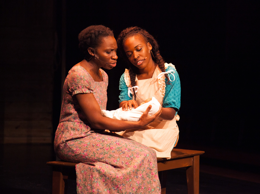 Campbell and Rolie portrayed loving sisters growing up apart – each finding their way in the world and moving away from the grip of their abusive Pa. The arrival of the self-assured Aimable brought spunk and heart to the production, and King was a jubilant Harpo, the perfect foil to his heartless father (Mister played despicably by Cecil E. Washington, Jr.) Harpo’s angelic face wins over all the ladies and his demeanor finally helps Mister learn how to appreciate and care for his family.