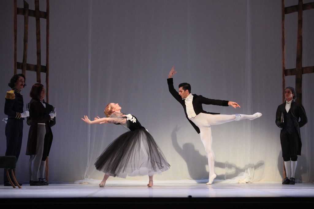 Finally the piece de resistance of the evening was the exalted pairing of principals Victoria Hulland and Ricardo Graziano in the first performance of Sir Frederick Ashton’s “Marguerite and Armand” in the United States. The piece was originally created for famed dancers Dame Margot Fonteyn and Rudolph Nureyev. Hulland and Graziano were the perfect romantic leads – he was all dashing grandeur in wooing her and she was a wounded beautiful butterfly – even her coughing fits were elegant. The two captured the romance and sadness of this piece, and I gasped a few times watching them cope with betrayal and loss with expression and movement.