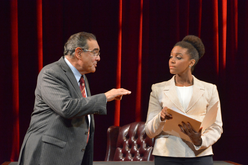 The production centers on another seemingly unlikely friendship – Scalia’s relationship with a liberal law clerk named Cat played by Jade Wheeler. Although Scalia never hired someone fitting Cat’s description, he did like to bring law clerks aboard who disagreed with him on policy to help him hone the strength of his written opinions.