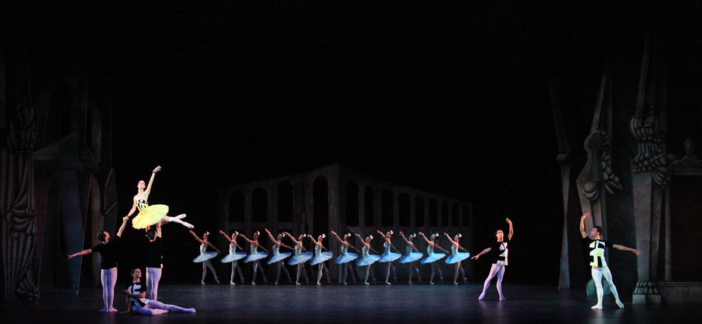Hulland was radiant and graceful with movements far more in common with a dove than a pigeon; and Honea lit up the stage as Hulland’s foil. Logan Learned was charming and beguiling as a gypsy thief, and at one point he was joined by rows of female dancers, like the stage version of “Logan’s ladies,” (the fond nickname of the dancer’s fans), providing a lovely frame for the petite powerhouse. I also enjoyed spotting the fabulous Christopher Hird, director of education, having his pocket picked by Learned in a short cameo.