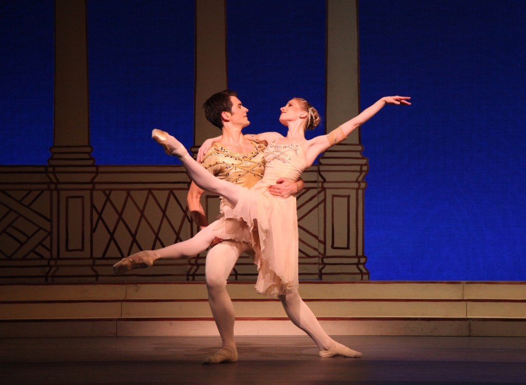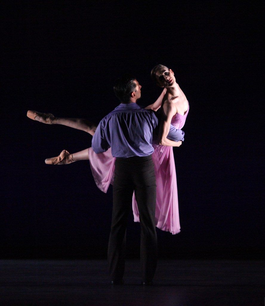 Next on the bill was Christopher Wheeldon’s “There Where She Loved.” This piece was amplified in intensity by the operatic voices of Michelle Giglio and Stella Zambalis and featured dramatic pairings of a large number of dancers, including the deft and spritely Danielle Brown, back on stage following an injury. Two of the highlights were the dance performed to Surabaya Johnny featuring a debonair and non-committal Ricardo Rhodes pairing and repairing with Kate Honea, Danielle Brown, and Ellen Overstreet. Overstreet is an expert at engaging with the audience while remaining in character slyly looking over at us as if to say, “don’t worry, I’ve got him.” Finally, Amy Wood and Ricardo Graziano performed a lovely yet sorrowful duet to “Je Ne T’aime Pas (I Do Not Love You).”