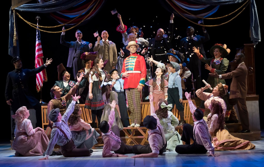 Which leaves the finest performance of this re-imagined “The Music Man” turned in by Britney Coleman as librarian Marian Paroo. Coleman’s soaring operatic voice is a lovely complement to Racey’s more grounded sound always laced with taps from his fast-moving feet. Coleman knocks the classics, “Goodnight My Someone” and “Till There Was You” out of the park. She also exudes a calm presence and modern sensibility as portraying a young woman whose intelligence is underutilized in an early 20th century small town. When Coleman and Racey finally sing the duet reprise of “Till There Was You,” their voices harmonize beautifully; but their newfound love feels a bit unearned. This could easily be fixed with a few more stolen glances and physical heat between the two earlier in the show; because both Coleman and Racey both have charm and grace in spades.