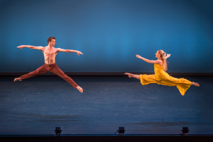 Yet it was “Errand into the Maze,” that was perhaps the most impactful. Eilber said that Graham chose to cast a woman as the warrior doing battle with a creature that she encounters in a maze. She said it was quite possible that the dancer, Charlotte Landreau during the performance I watched, was actually tackling a fear within her own mind. This dreamlike piece was at once frightening and empowering as Landreau completely owned the stage to conquer the beast, portrayed by the fantastic Lloyd Mayor. It seemed from Eilber’s cheeky description of the piece that she found it quite suitable for this year, when only a month ago, the most women ever were sworn into Congress for the first time. Landreau was a stand-in for all women as we conquer our fears; and as she jumped up exuberantly to claim her win, she was the very embodiment of victory.