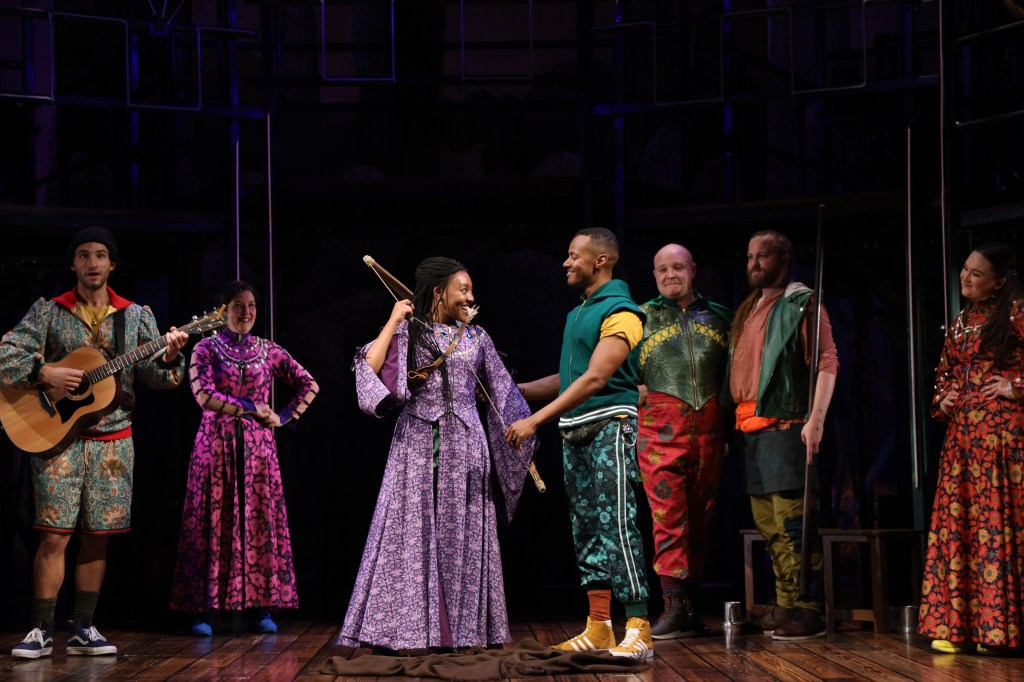 We first meet the famed nobles Robert of Locksley (Anthony Chatmon II) and Maid Marian (Savy Jackson) when they are playful young children having an adorable debate about who is the better marksman (clearly Marian). There’s quite a lot of chemistry there both between the two and with the audience. Chatmon and Jackson ooze charisma, and the energy drops a bit when the Sheriff of Nottingham (Nick Rehberger) splits them up and grabs Marian for himself.
